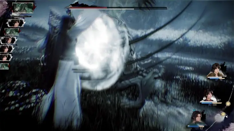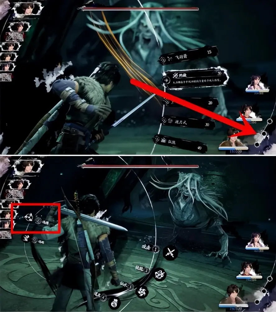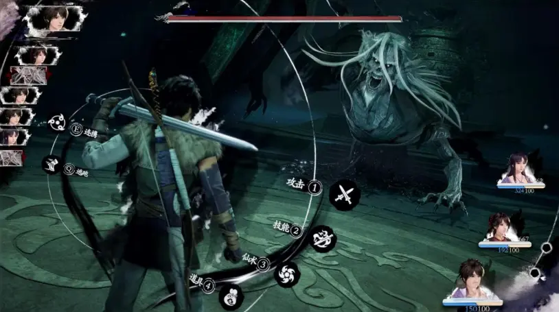 在核心的战斗系统上,重制版做出了大胆革新却又保留了原作精髓。游戏依然采用回合制,但摒弃了系列传统的时间轴和五行技能栏,改为左侧图标显示战斗顺序,技能栏则换成了方块图标,神和气的数值被压缩在一行显示。这种改动让老玩家一时难以适应,不少人吐槽UI设计过于简陋,失去了原作古色古香的质感,反而与《33号远征队》高度相似。